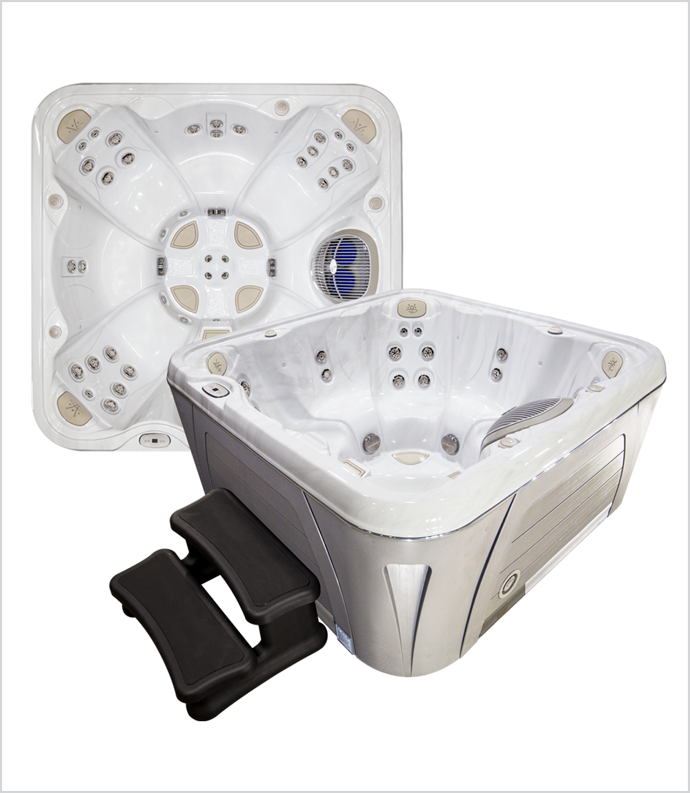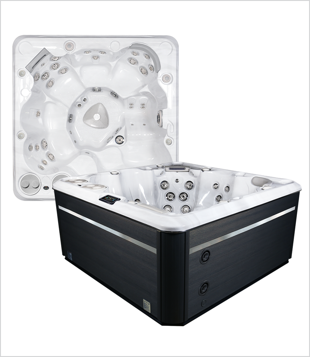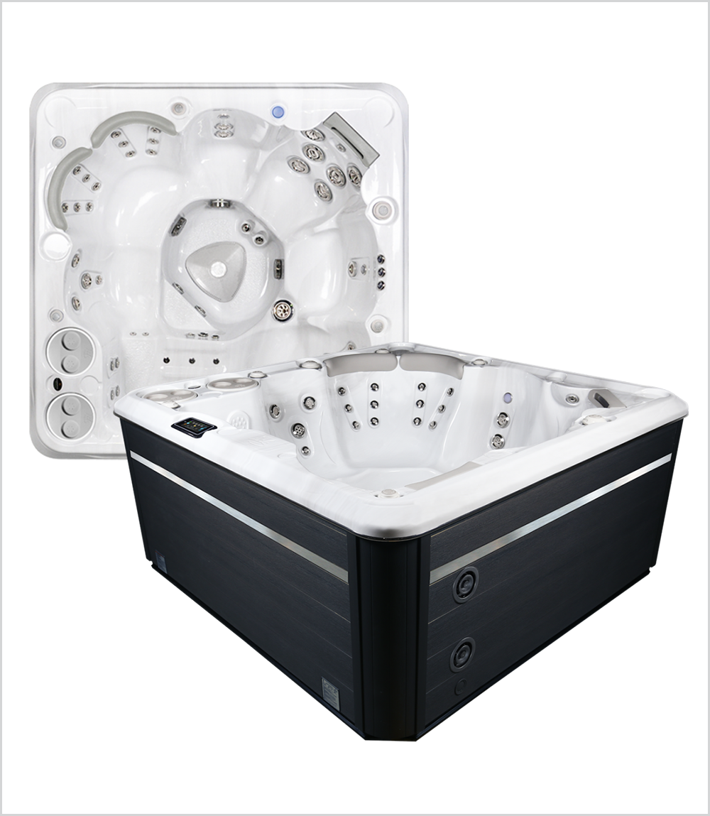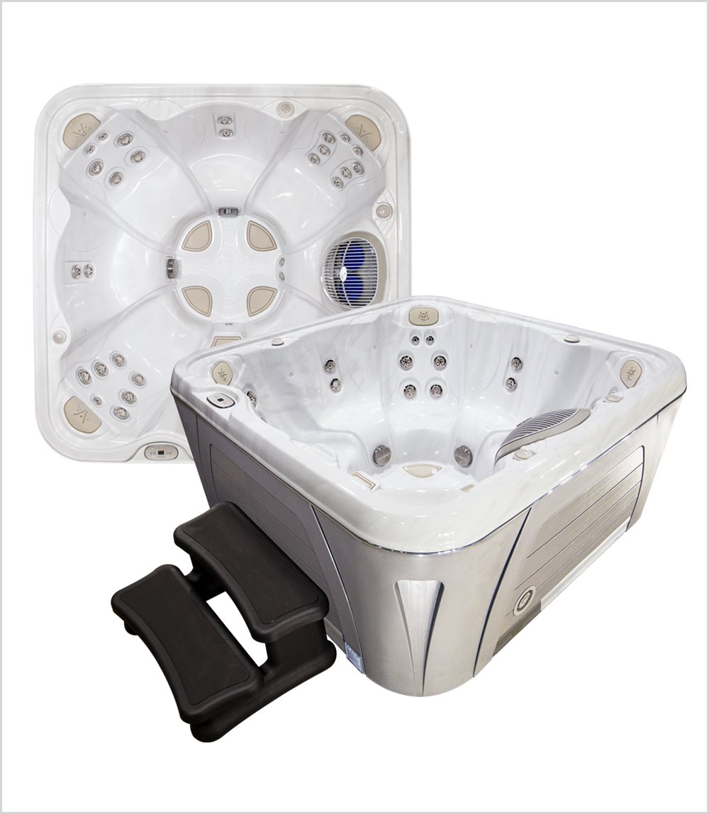 With seating for four, this model is beautiful. You'll get an exclusive wellness program and an all-active jet design. The lounge area is great for taller people, and it also serves as a cool-down ledge for luxury.
