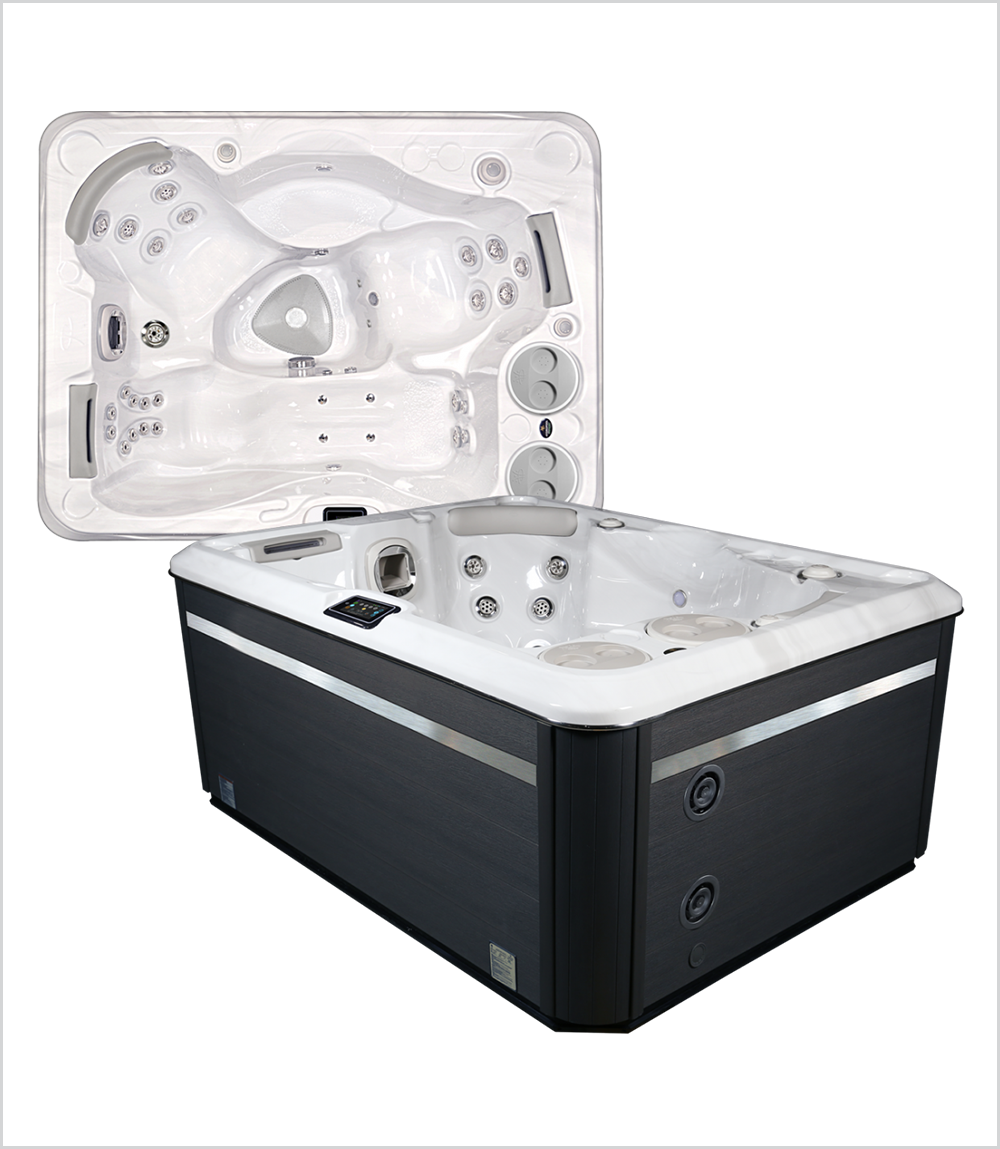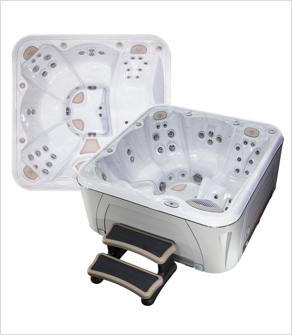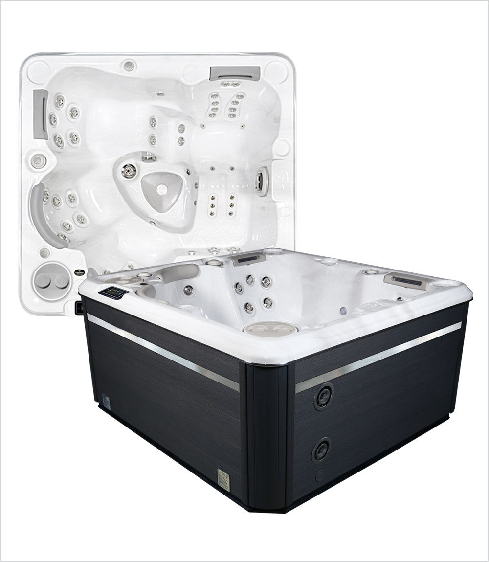 With seating for four, this model is beautiful. You'll get an exclusive wellness program and an all-active jet design. The lounge area is great for taller people, and it also serves as a cool-down ledge for luxury.