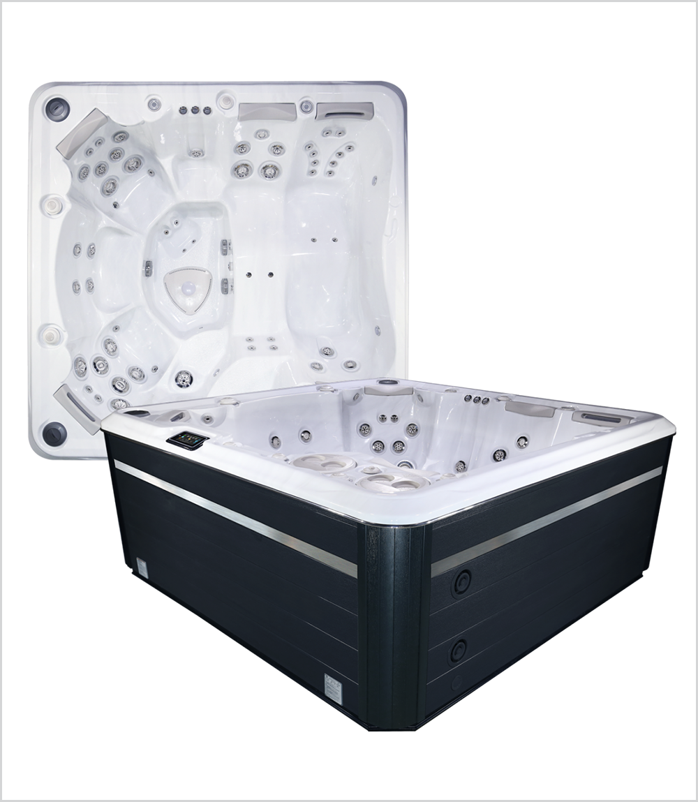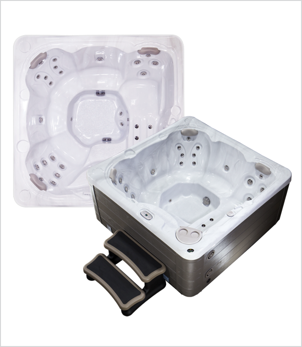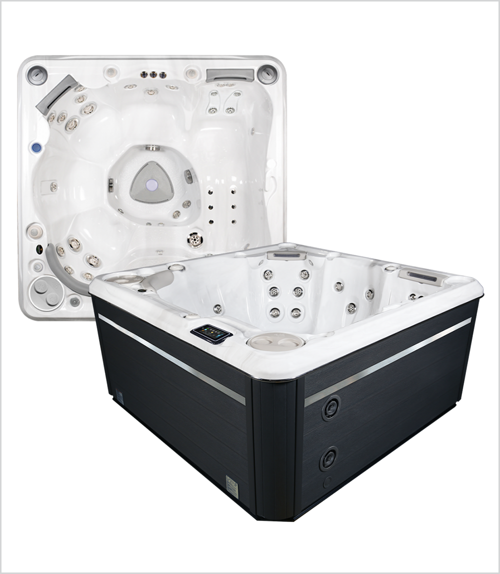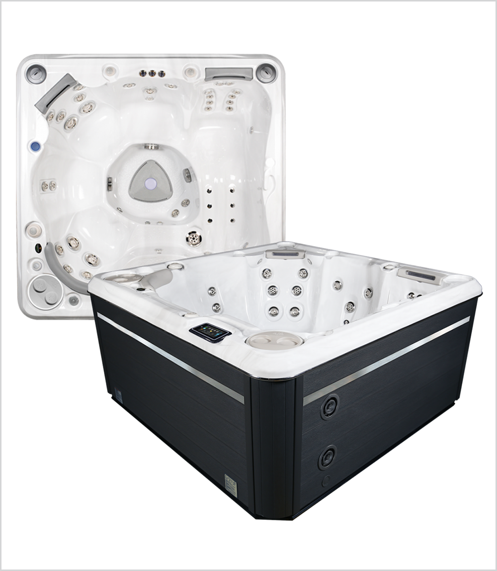 With seating for four, this model is beautiful. You'll get an exclusive wellness program and an all-active jet design. The lounge area is great for taller people, and it also serves as a cool-down ledge for luxury.